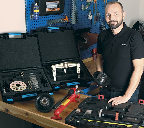 Produkt Koordinator Lars Berthelsen mit Radlager Spezialwerkzeuge