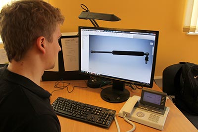 In der Entwicklungsabteilung werden mithilfe von 3D CAD (Autodesk Inventor) neue Referenzen im Hinblick auf OE-Spezifikationen entwickelt und in traditionelle Produktentwürfe umgesetzt. Die Kompetenzen in der Entwicklungsabteilung umfassen u. a. auch die Entwicklung der Spezialbeschläge, mit denen viele Gasfedern ausgerüstet sind und die immer als Teil einer Komplettlieferung an Triscans Gasfedern montiert sind.